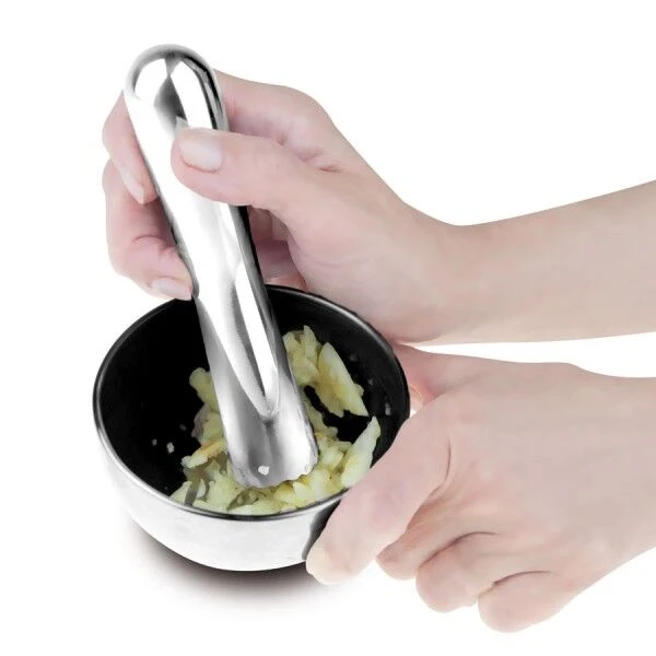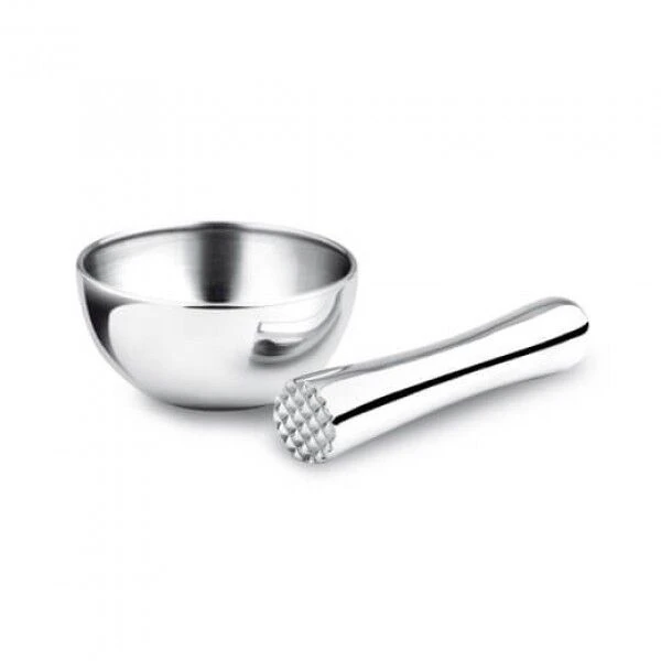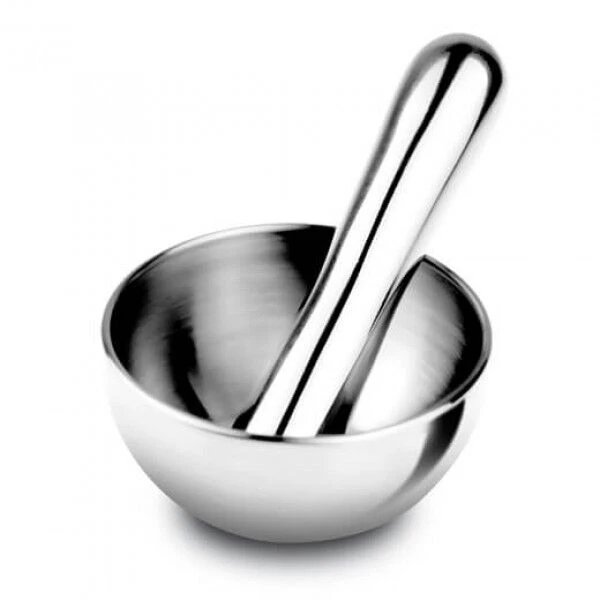 Met de roestvrij stalen i Genietti mini-vijzel maalt u zelf zeer gemakkelijk een verse kruidenpasta. De set bestaat uit een kleine kom en een stamper. De stamper is aan de onderzijde voorzien van stevige ribbels, wat de vijzel perfect geschikt maakt voor het verwerken van hardere ingrediënten of het bereiken van een grover resultaat. Gebruik de i Genietti mini-vijzel voor het kneuzen, malen of vijzelen van verse kruiden en specerijen.