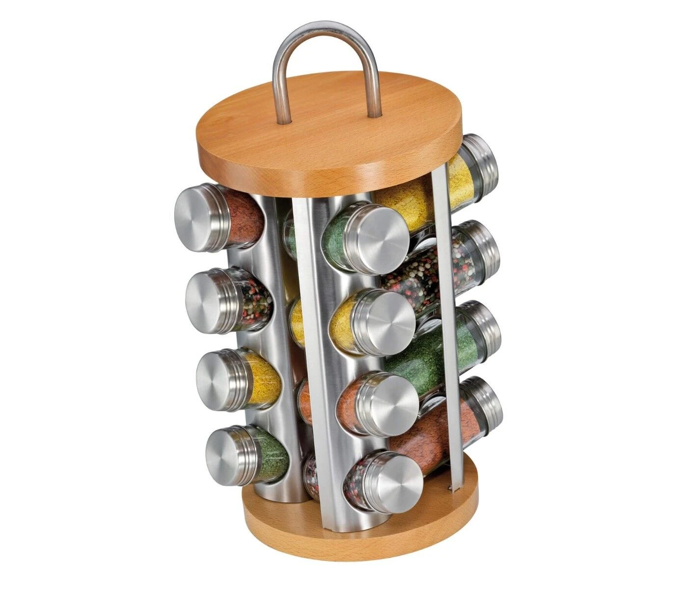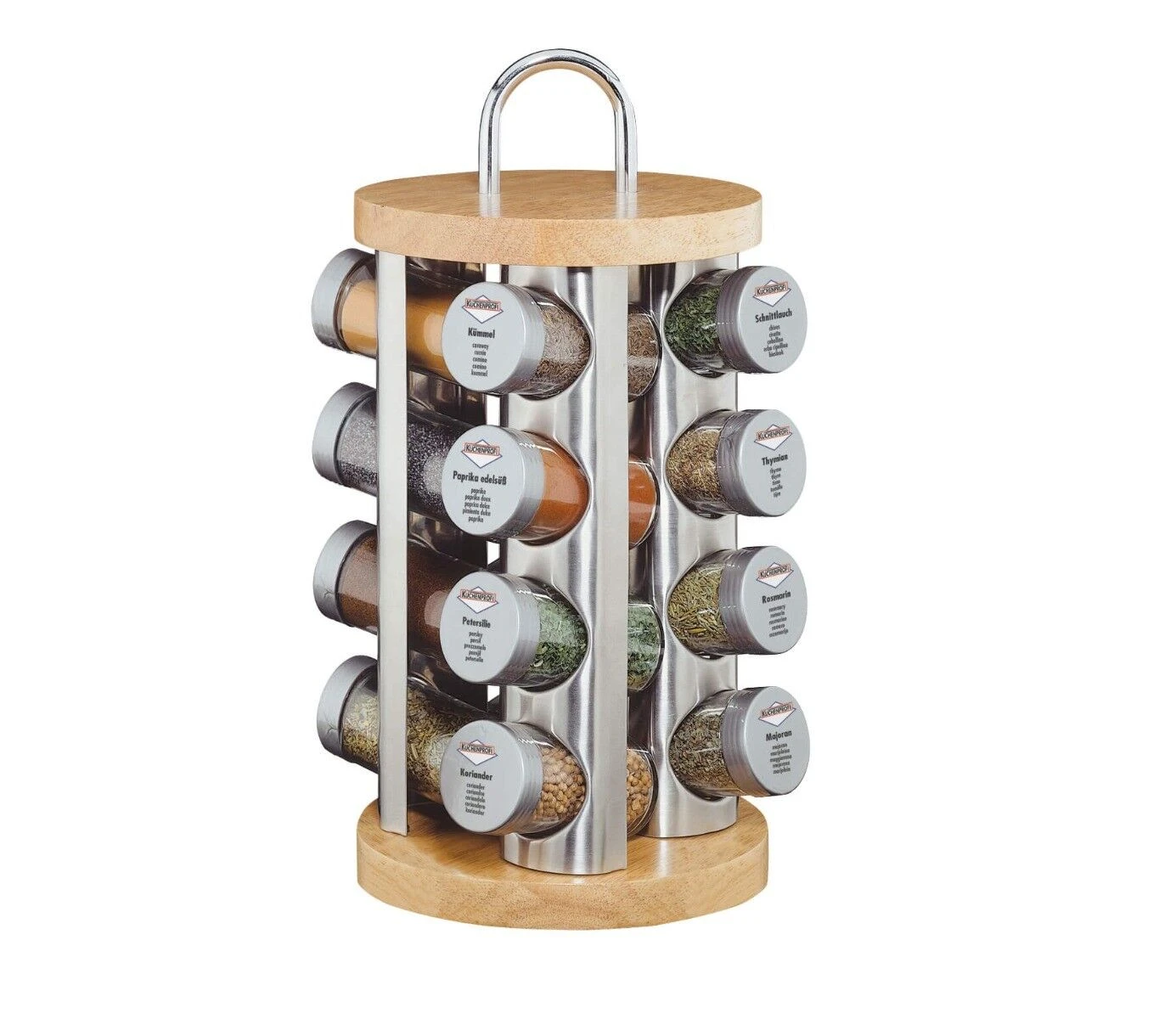 Met het kruidenrek van Küchenprofi heeft u altijd uw kruiden bij de hand. De kruiden bewaart u in 16 glazen potjes. Het rek is draaibaar, waardoor u eenvoudig het juiste kruid pakt. Een handige handgreep biedt extra draaggemak.