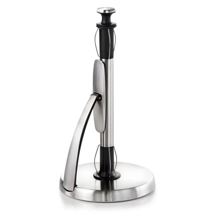 De OXO Good Grips keukenrolhouder is volledig vervaardigd uit roestvrij staal. De hoogte van de keukenrolhouder is 31 cm en heeft een diameter van 18 cm. Het stijlvolle ontwerp staat erg mooi op het aanrecht. Dankzij de verzwaarde antislipvoet blijft de keukenrolhouder op zijn plek staan. De geveerde arm houdt de rol tegen waardoor het afscheuren van één vel gemakkelijk gaat. Gebruik voor het eenvoudig afscheuren van keukenpapier.