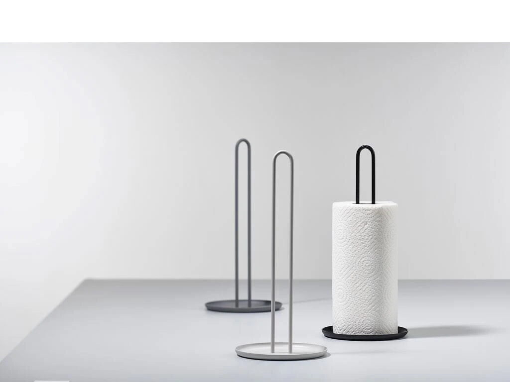 De elegante keukenrolhouder van Zone Denmark is gemaakt van gepoedercoat staal. De hoogte van de houder is 32 cm en de breedte van de voet is 14,5 cm. Gebruik als houder voor keukenpapier rollen.
